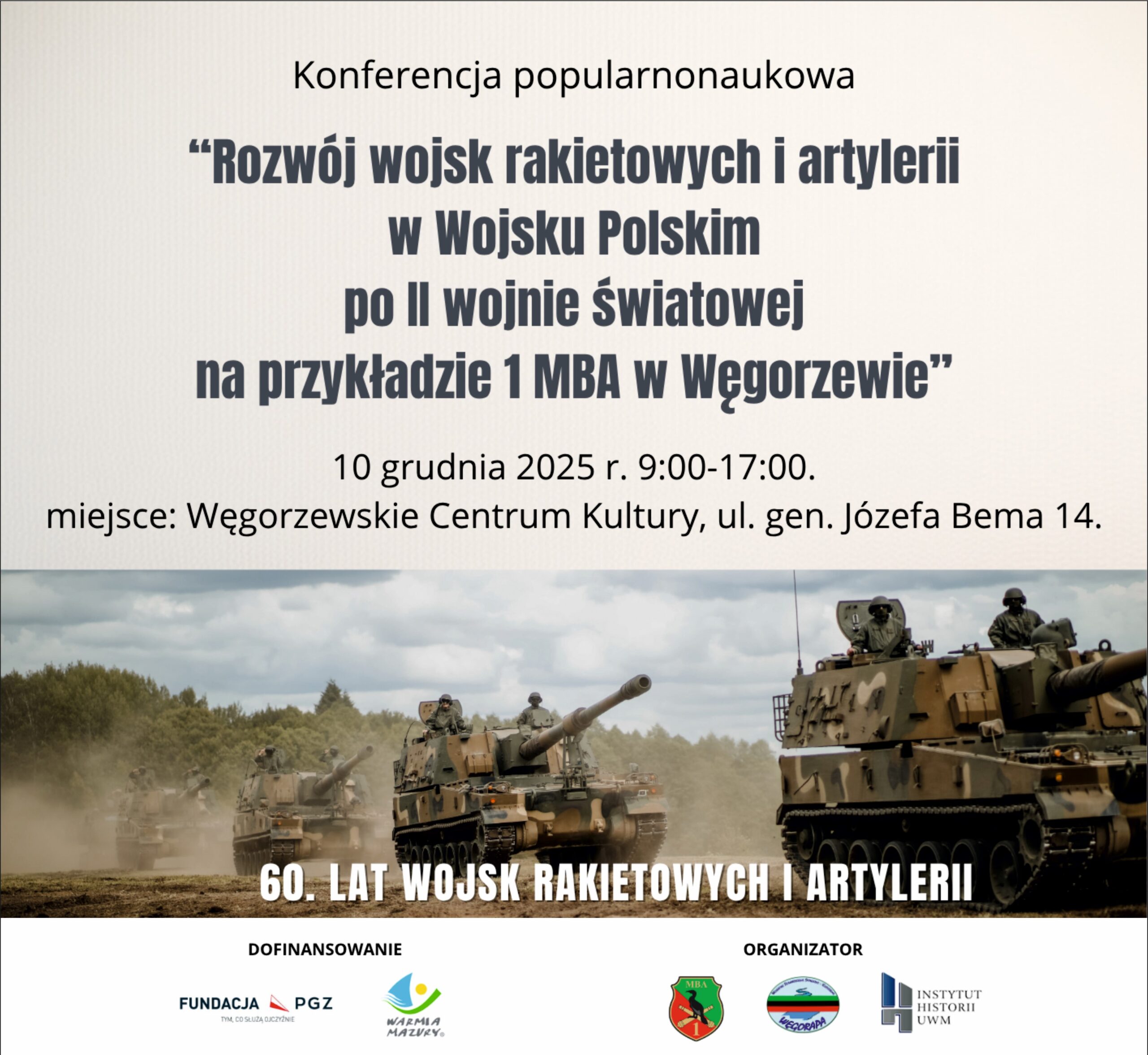 Konferencja, której głównym organizatorem jest 1 MBA a współorganizatorem WSSK Węgorapa zostanie zorganizowana dzięki wsparciu finansowemu Samorządu Województwa Warmińsko – Mazurskiego oraz Fundacji PGZ. Konferencja została wsparta przez Instytut Historii UWM . Jest zorganizowana w roku, w którym polscy artylerzyści obchodzą 60-tą rocznicę utworzenia Wojsk Rakietowych i Artylerii.