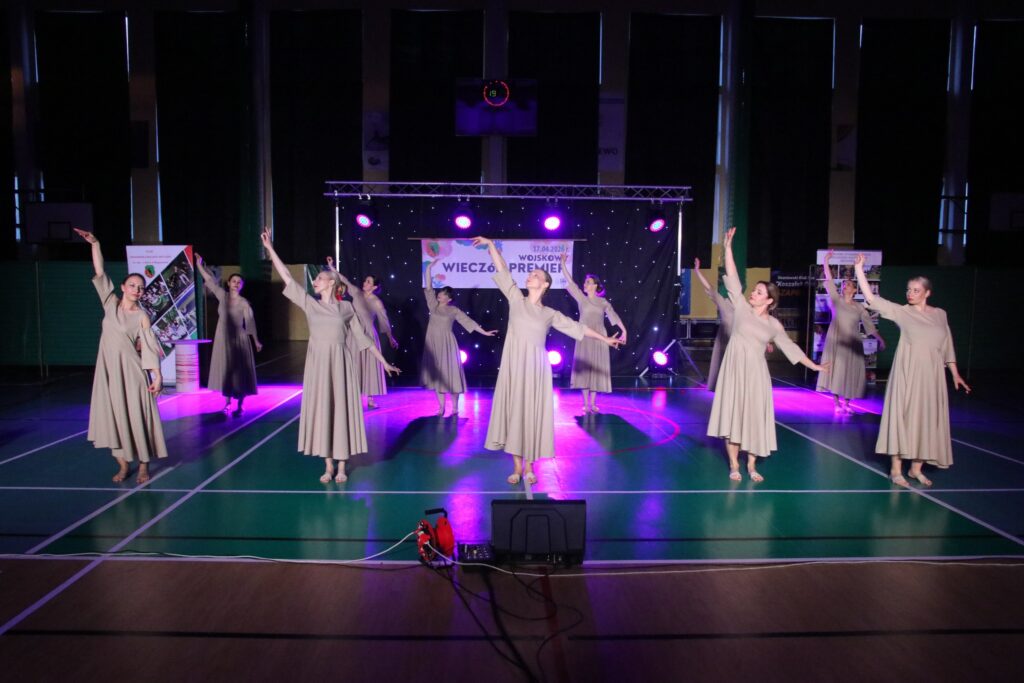Koniec kwietnia każdego roku od kilkunastu już lat jednoznacznie kojarzy się z tanecznym podsumowaniem roku w Klubie Wojskowym 1 MBA. Zawsze te koncerty były wydarzeniem artystycznym, kulturalnym ale też i frekwencyjnym. W piątkowe popołudnie, 18 kwietnia 2026 r. w gościnne progi Hali Miejskiej przy ulicy Pionierów, przybyło kilkaset osób. Wśród widzów zasiedli rodzice, koleżanki i koledzy, rodzeństwo a także: w imieniu Dowódcy 1 MBA – Pan mjr Jarosław SKICZEWSKI, Zastępca Burmistrza Węgorzewa – pani Lidia Czerniewicz, Starosta Powiatu Węgorzewskiego – Pani Joanna Soćko. Miłym akcentem na początku koncertu było podziękowania i upominki dla zespołów Mini Dance i Miniaturka, dla których był to ostatni wieczór premier.